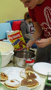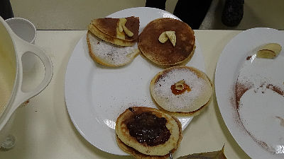 U našem domu, priznanje toj važnoj profesiji odali su učenici organizirajući kuharski show - dvoboj u pečenju palačinki. Zadatak ekipa bio je da u određenom vremenskom roku ispeku što više , što ukusnijih i boljih palačinki. Bodovao se okus ali i vizualni dojam, a raznih dekoracija od voća i šećera nije nedostajalo. Ekipe su profesionalno shvatile zadatak pa je natjecanje bilo vrlo napeto i zanimljivo. Žiri je imao težak zadatak u odabiru boljih palačinki, jer su obje ekipe pokazale pravo kulinarsko umijeće . Ipak „ Američke“ palačinke koje su spravljali Luka, Daniel i Elizabeta za svega nekoliko bodova su pobijedile ekipu majstorica Lucije, Meline i Karmen. Sasvim je očekivano da su i gledatelji - degustatori bili vrlo zadovoljni jer su palačinke obiju ekipa „planule“ u vrlo kratko vrijeme