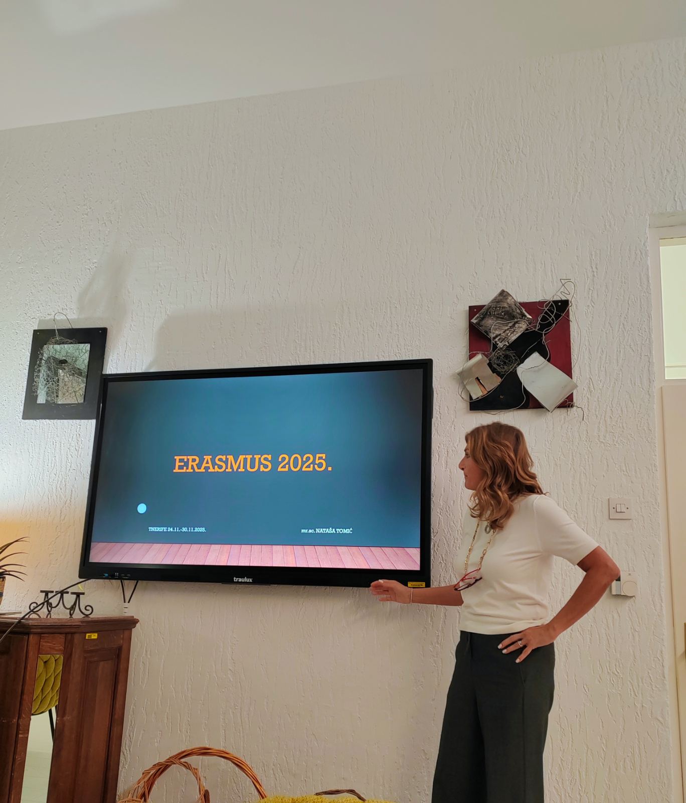 Na zadnjem ovogodišnjem Vijeću odgajatelja naša ravnateljica prezentirala je svoj boravak na Erasmus + projektu "Green path to sustainability and well being" (ID KA122-SCH-FEC69179). Tečaj "Learning and Acting for a Better Future" održao se na Tenerifama od 24.11.2025.-30.11.2025. Cilj usavršavanja bio je stjecanje znanja i razvoj novih vještina koji se mogu implementirati u upravljanje Domom, stvoriti praktične i inovativne načine za promicanje održivosti koji će rezultirati dugoročnim pozitivnim promjenama. Nadograditi provedbu cirkularne ekonomije koju već provodimo i primijeniti novi sistemski pristup u mediteranskom vrtu te načinu razmišljanja u rješavanju novih izazova. Pored obrazovnog dijela tečaja Erasmus daje mogućnost upoznavanje s kolegama iz drugih Europskih zemalja, razmjenu iskustava te primjera dobre prakse.
