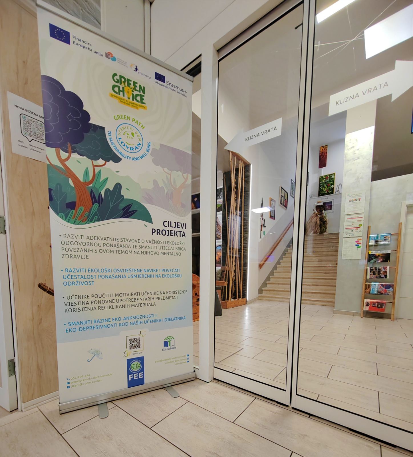 * Tijekom polugodišta izradili smo informativni baner s najvažnijim detaljima o Erasmus+ projektu Green path to sustainability and well being (KA122-SCH-FEC69179) na kojem marljivo radimo. Cilj nam je učenicima, zaposlenicima i svim posjetiteljima približiti aktivnosti, ciljeve i vrijednosti koje projekt donosi našoj zajednici.