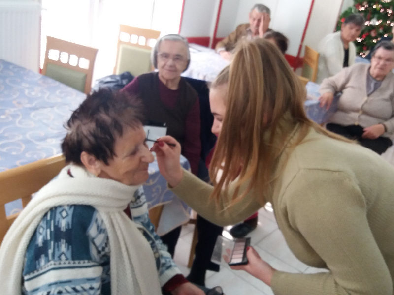 Uz druženje, naše učenice kozmetičkog usmjerenja korisnicama su pružile usluge šminkanja i masaže ruku, a mladi glazbenici i glumci podigli su atmosferu prigodnim pjesmama i igrokazom. Nakon ručka svi su se počastili kolačima koje je pripremila naša učenica slastičarka.
