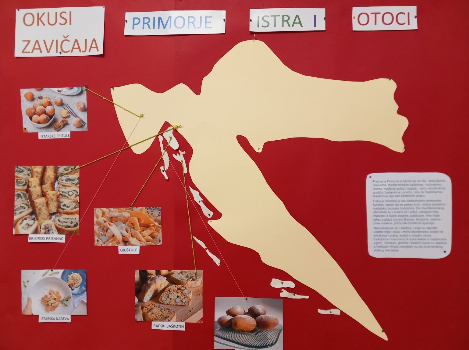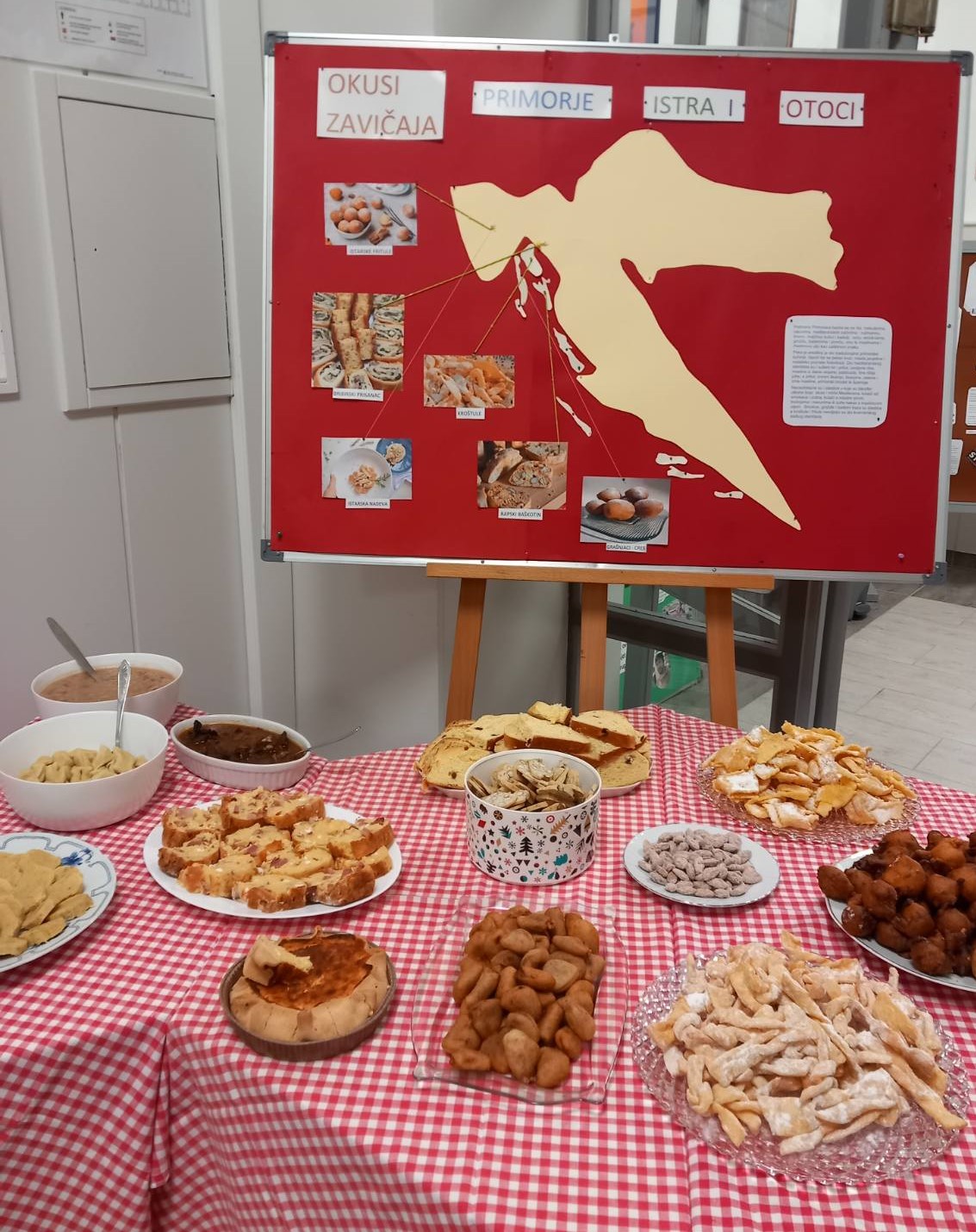 Na početku projekta odlučili smo da se svojim autohtonim jelima predstave učenici iz Istre, Primorja i s otoka. Učenici su u domu pripremali Bribirski prisnac, a tijekom vikenda s mamama i nonama delicije svog kraja. Tako smo imali prilike degustirati rapski baškotin, broštulane mendule, istarske kroštule, vrbnički presnec, fritule, istarsku maneštru, nadevu, creski gulaš s njokima, primorsku pincu, grašnjake.