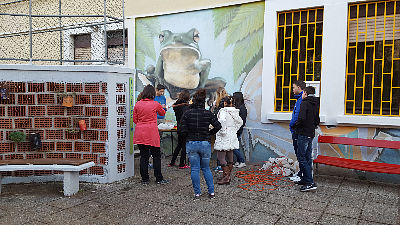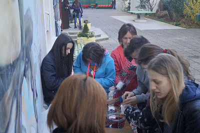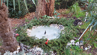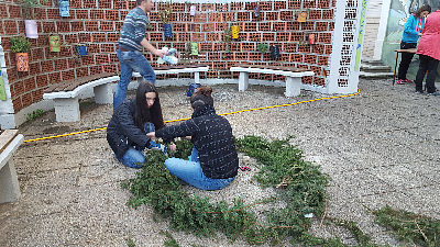 Umjesto klasičnog adventskog vijenca odlučili smo se izraditi veliki vijenac od grana bora oko dvorišne fontane, vijenac smo ukrasili mašnama, zvjezdicama i ručno rađenimsvijećama- tinjalicama od mreže. Želimo Vam sretne nadolazeće blagdane!