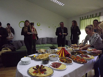 Nakon kratkog programa u izvedbi učenika Doma, studenti su nastavili druženje s predstavnicima Fakultete uz domjenak koji su pripremili učenici.Danas je u Domu upriličeno svečano otvorenje dijela studentskog kata, kojem su nazočili brojni uzvanici